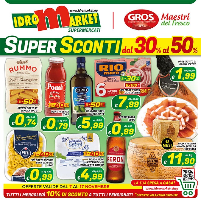 I Supermercati Idromarket fanno parte del gruppo GROS (Gruppo Romano Supermercati) che riunisce le 12 insegne storiche della capitale e provincia.